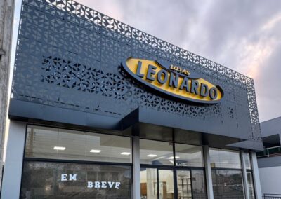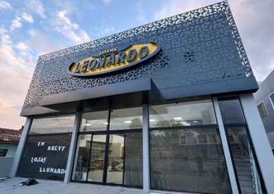 Nesta obra temos toda uma fachada feita em ACM Preto fosco com corte especial de ROUTER CNC, juntamente com marquise em ACM com 2 metros de avanço em estrutura metálica, toda revestida em ACM Preto fosco, e para complementar foi fabricado um Luminoso em ACM com Letra caixa e iluminação em led