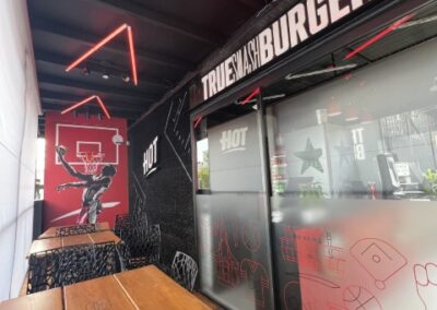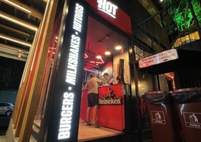 Um projeto super completo e moderno de comunicação visual para a Hamburgueria HOT, o projeto conta com letras caixas com e sem retro iluminação, com aplicação de adesivos, películas jateadas para separação de ambientes e corte a laser de ACM. Você pode conferir o nosso trabalho no Porto Gastronômico em São Mateus do Sul - PR